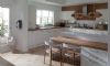 A woodgrain effect painted shaker door with wide frame and a deep set centre panel.